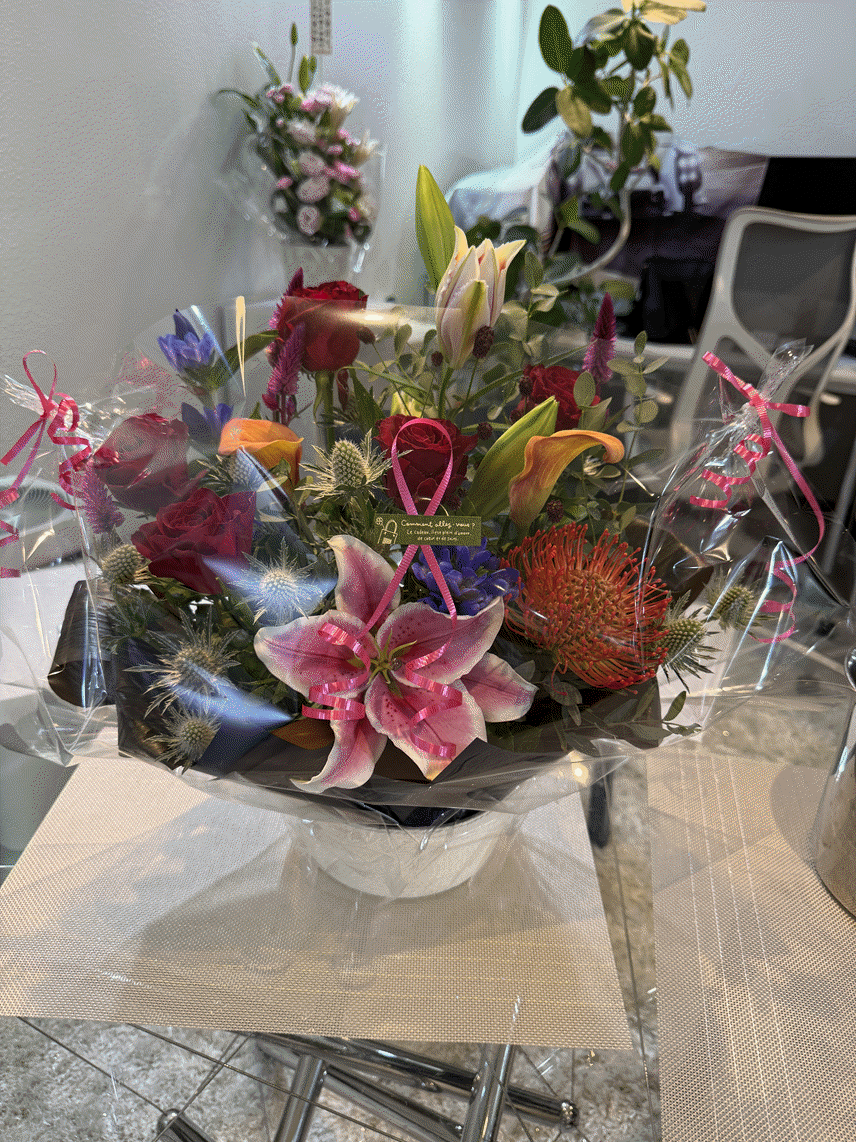 1F事務所では、わたしがお迎えするよ、よろしくワン!